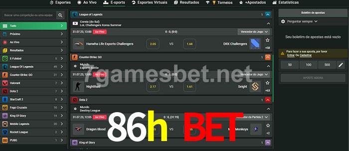 O 86h bet oferece uma grande seleção de opções de apostas em e-sports com probabilidades competitivas